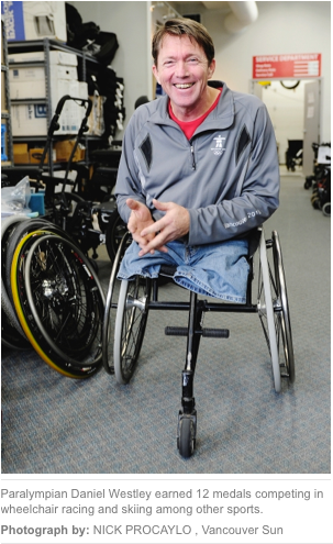 While in the hospital, Westley happened to meet a young Rick Hansen who, years before raising millions for spinal cord injury research, introduced Westley to wheelchair athletics.