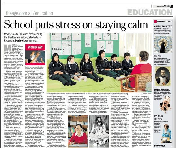 The Age features Transcendental Meditation and the Maharishi School in national education article