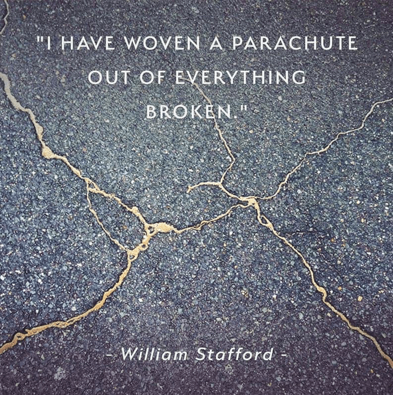 Speaking of weaving together a parachute from everything broken, this most popular poem by Stafford, and my favorite, talks about holding onto an unseen thread that’s woven throughout all of life’s experiences.