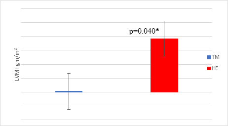 Changes in Left Ventricle Mass Index (LVMI) between the TM and HE Groups after 6 Months
