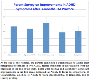 In conclusion, these findings warrant additional research to assess the impact of Transcendental Meditation practice as a non-drug treatment for ADHD, and to track meditating students’ improved academic achievements.