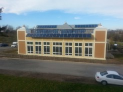The university did build their off-the-grid Sustainable Living Center, the first of its kind. Troy installed a wind-turbine, with the help of students who built it, and added more solar panels on the energy cottage and new SLC classroom building.