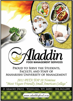 Links to the online version with only one photo: http://www.education-executive.com/index.php/higher-education/1125-maharishi-university-of-management and digital edition: http://www.nxtbook.com/nxtbooks/phoenix/eduexec_2012spring/#/64 of the two-page layout containing photos of Craig Pearson, Argiro Student Center, MUM campus, and the Aladdin Food Management Services ad.