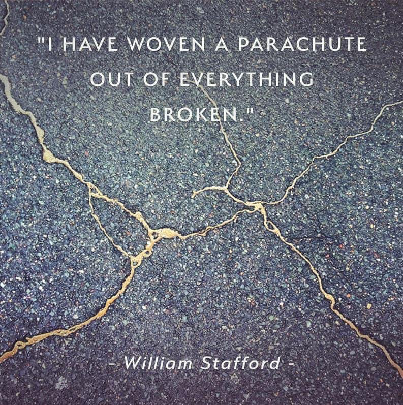 Speaking of weaving together a parachute from everything broken, this most popular poem by Stafford, and my favorite, talks about holding onto an unseen thread that’s woven throughout all of life’s experiences.